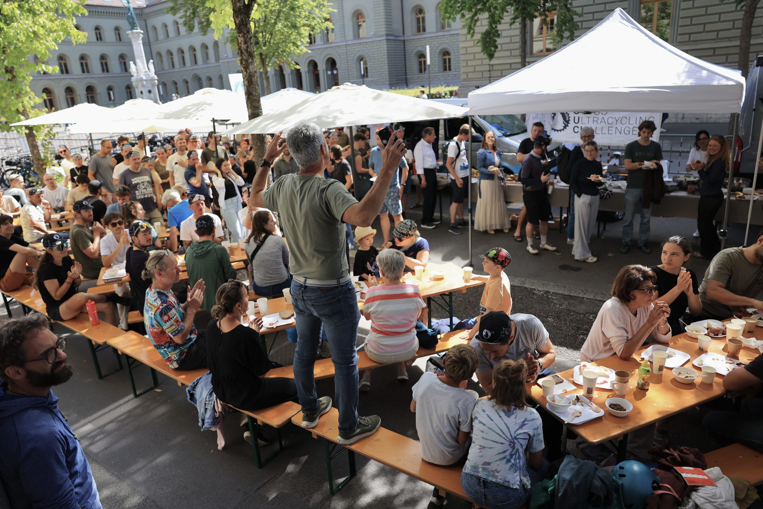 Bundesplatz, Bern. By tradition, this is where the journey ends. The finish line stands in the heart of the capital, on the Bundesplatz. Sunday morning, 11:00 AM is the final deadline. Cross the line in time, or the challenge remains unfinished.